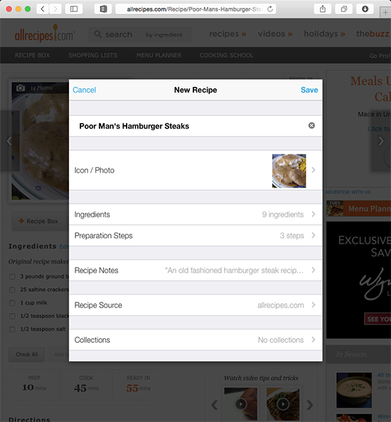 An AnyList button will appear in the Safari toolbar. Click it while viewing a recipe web page to open a new tab, where you can review and edit the recipe.