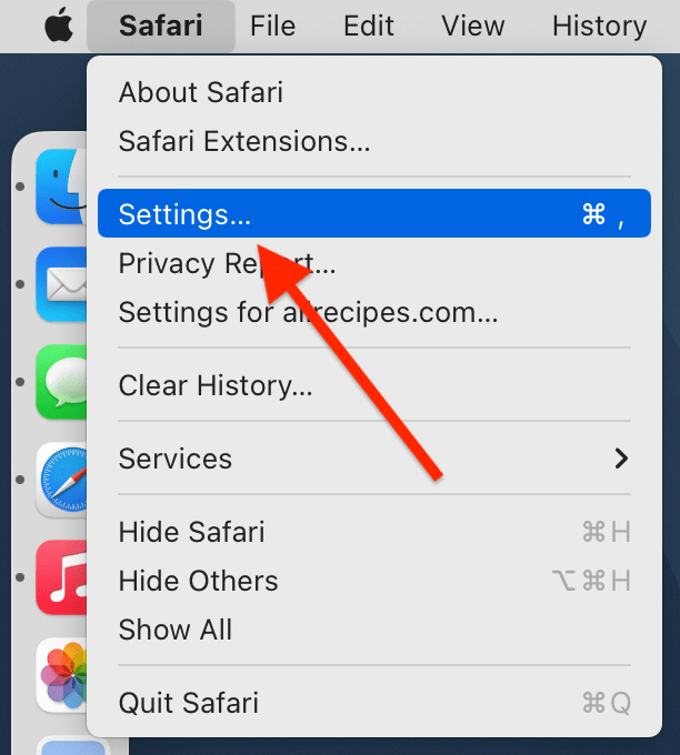 Note: The Settings menu is labeled Preferences on macOS 12 and earlier.